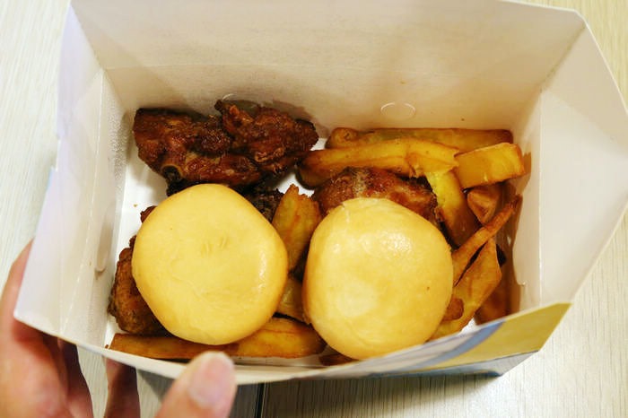 餐點內容:大雞腿 x1、原味雞塊 x2、甜甜包 x2、薯條(100g) x1、28元飲品 x1 ,售價 149 元,份量足,尤其是甜甜包吃光了之後。