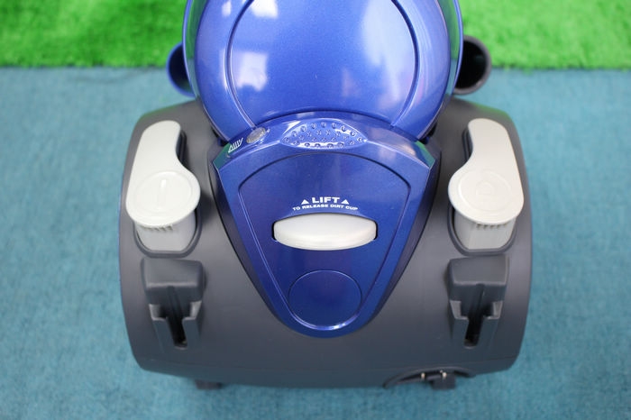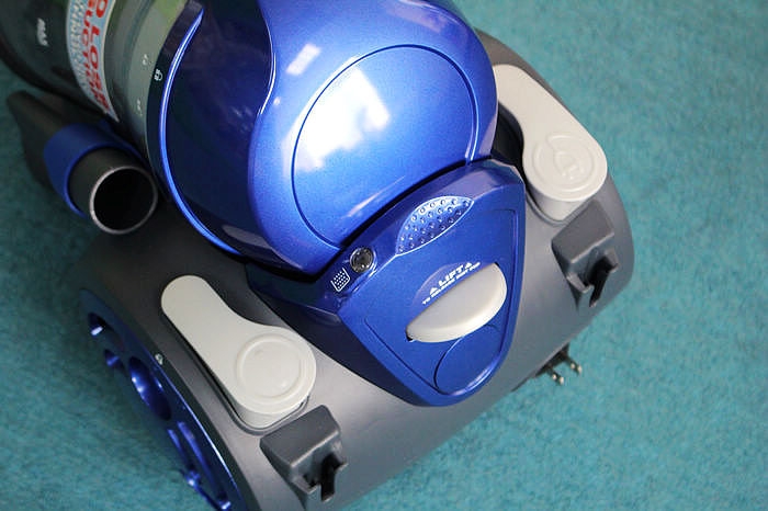 Hello Kitty 的電源鍵與收線鍵與機身同色,Infinity V8 power 是左右兩邊的電源鍵與收線鍵,比較好辨識,中間凸出白色的是集塵筒提取鈕,也多設塵滿指示燈。插頭也是自底部抽出。
