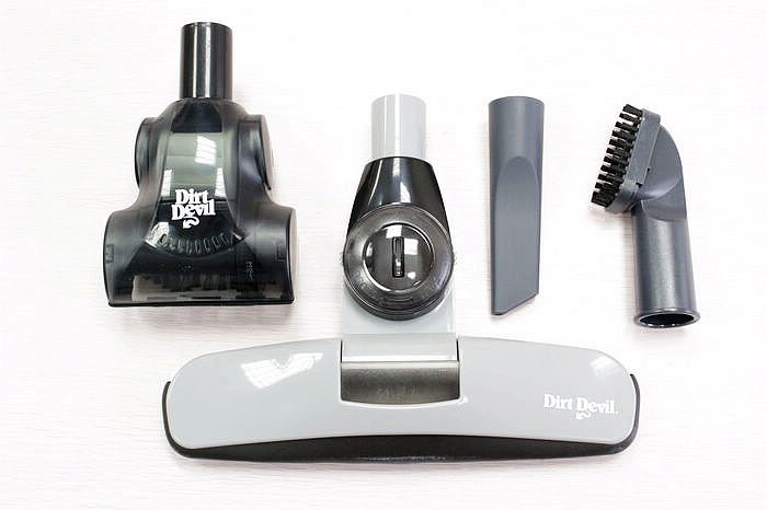 直接附帶的吸頭有微型渦輪吸頭、360 度地板吸頭、尖嘴吸頭、毛嘴吸頭,其中的毛嘴吸頭是結合平板的二合一吸頭。尖嘴吸頭、毛嘴吸頭都可以試材質來清理小面積髒污的物品。
