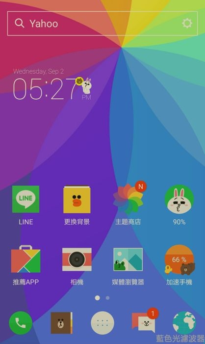 下載後可以看到許多應用程式的圖示也都已經置換成你所熟悉的 LINE 角色,而時間旁更有著可愛的小角色來輪播呼應此時心情,我們甚至還能透過點選 “更換背景” 來隨機更換背景。當然若是想要連排列方式等都重新配置,LINE Launcher 還有一個 “LINE 桌面設定” 的功能提供給大家進去調整。