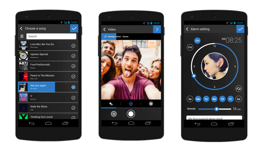 在 MorningDJ 可以創立自己的鬧鐘頻道,更有超過1百萬首歌曲可讓你用來搭配影像創作作為社群鬧鐘,完成作品並加上鬧鐘時間即可當作自己的鬧鐘或按下傳送給朋友,設定成他的鬧鐘提醒!