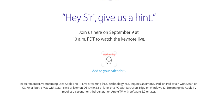 網路直播的部分,如果家裡有 Apple TV 的朋友相信已經可以看到 “Apple Events” 的頻道出現其中,使用 Apple 裝置的朋友則同樣能夠透過 safari 來從 Apple 網站 (http://www.apple.com/apple-events/september-2015/) 觀賞。比較特別的是這次直播頻道將不再僅限於 iOS 與 OS 的使用者,加入了 Windows 10 Edge 的版本用戶!