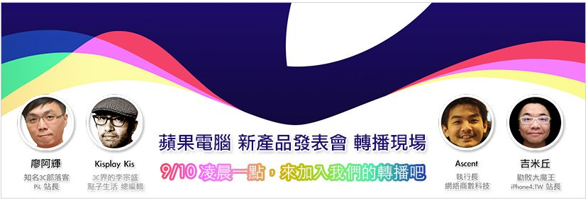 就在今晚!!! 幾乎可以說是全球科技線媒體的戰事、全球蘋果迷的盛事- Apple 將為新一代 iPhone 舉辦發表會!!! 我們已經在日前整理目前新一代 iPhone 會有哪些新功能加入的謠言,還猜測會有新的 iPad Pro、iPad mini、Apple Watch 錶帶、Apple TV 等商品一同亮相,不過,今晚我們要怎麼一同透過網路與 Apple 共襄盛舉呢?!