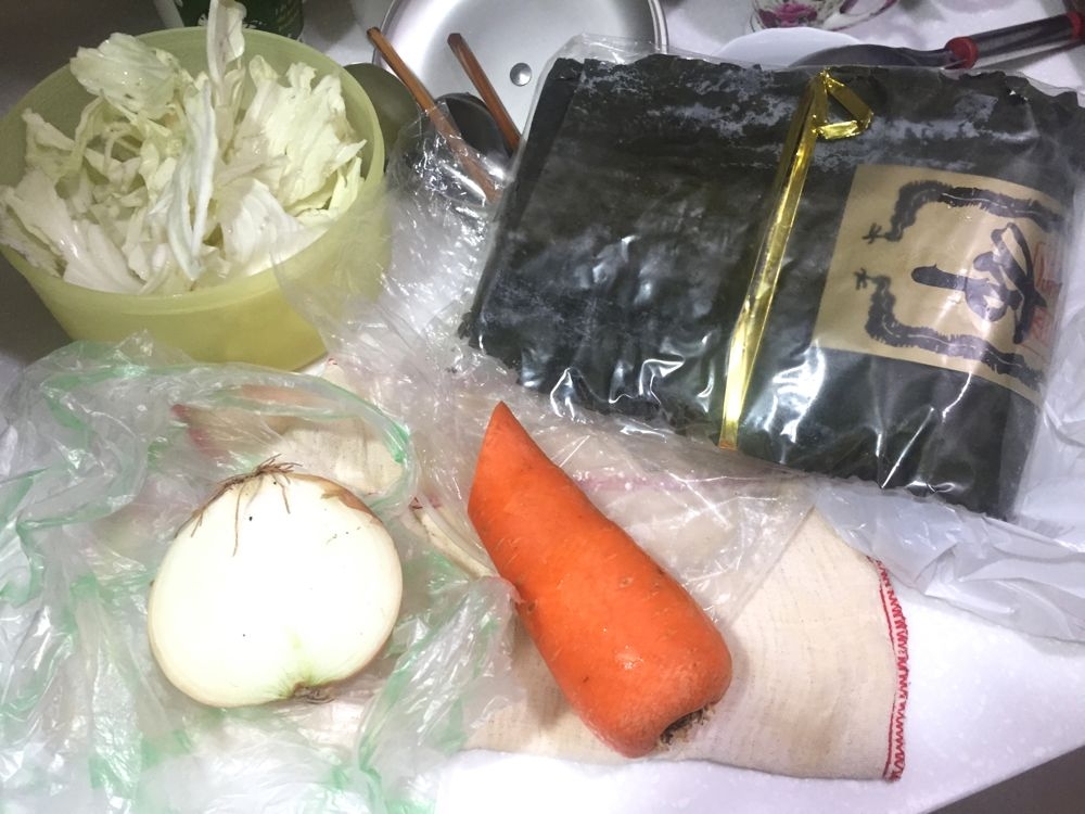 準備食材: 昆布數片、紅蘿蔔、洋蔥。
