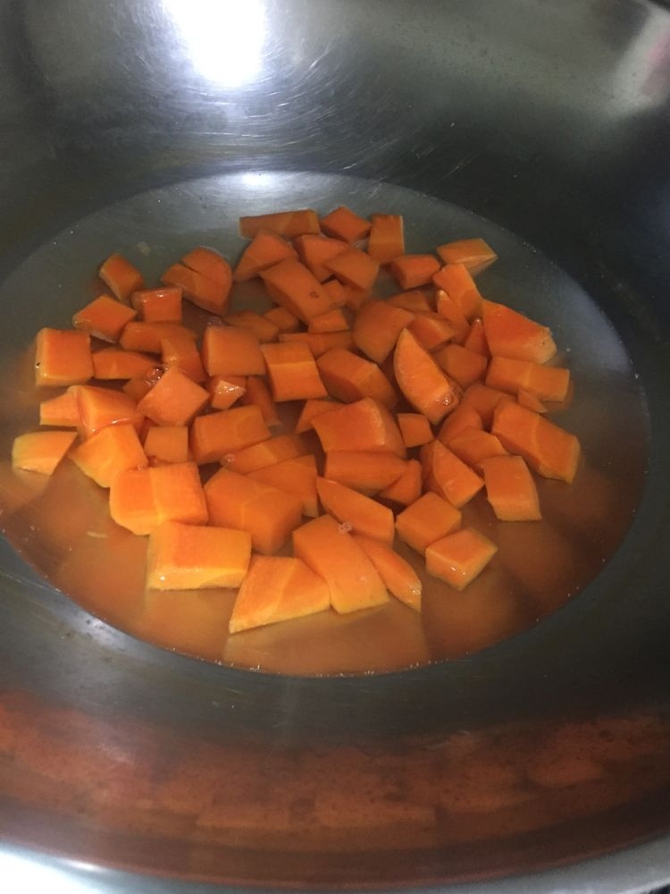 1) 紅蘿蔔: 去皮切丁後放到鍋子中小火慢煮,等到紅蘿蔔軟了後,除了那些湯汁可以收起來當高湯以外,紅蘿蔔也能打成泥做成紅蘿蔔泥磚日後食用。