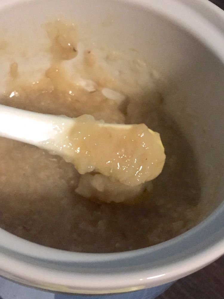 但一切的辛苦也都在看到寶寶將粥吃進口中那驚訝與發亮好喜歡的眼神後,瞬間獲得了最大的滿足!!!! 接下來只要將冰箱中的高湯和洗好的米進行想要口感的搭配後,就能很快地再煲煮出這讓寶寶營養與開心滿滿的粥了呢!