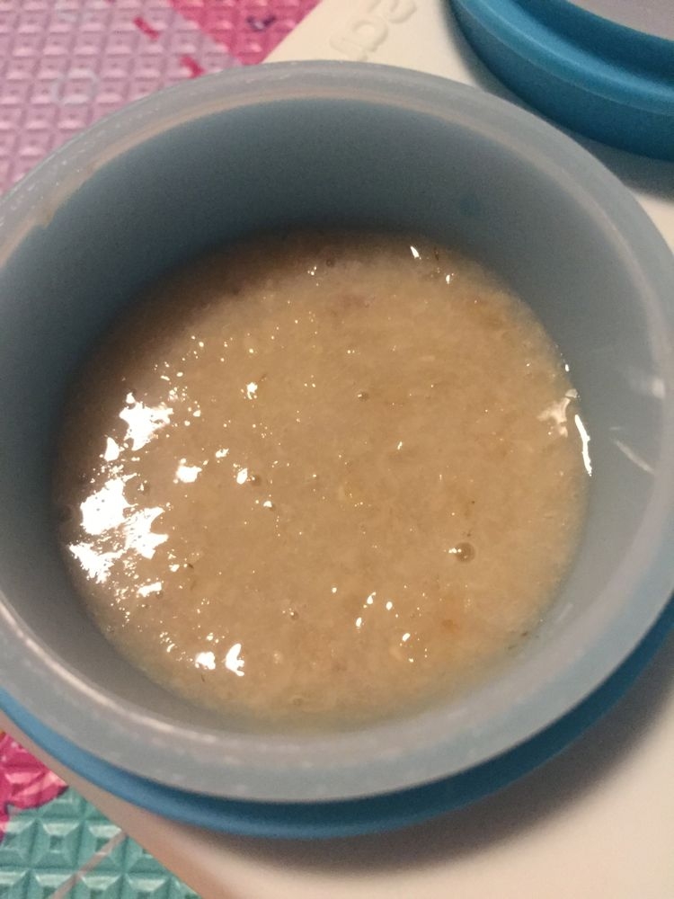 我這邊是冰鎮了 4 小時後放到副食品燉鍋中慢慢煲,大約 2 小時左右就會軟嫩。同樣汁瀝出當洋蔥高湯,洋蔥因為會出水,所以盡量瀝乾,再打成泥做成冰磚備用。