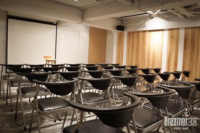 樓梯往下走,地下室的空間很彈性,可以用來辦活動,大約可塞40人左右,也有超大投影幕,甚至還用心的多了一個小吧台,一旁也有地下室專用的廁所,果然是常辦活動人開的店,硬體設施非常完善,很多小節都注意到了。