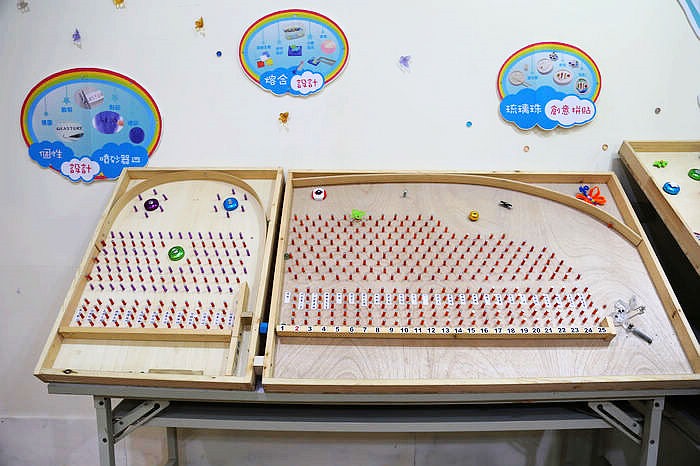 接著進入魔力彈珠遊戲屋,尋找童年回憶,跟夜市玩到的彈珠台一樣,差在這裡是木製的更懷舊。