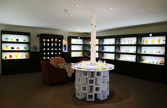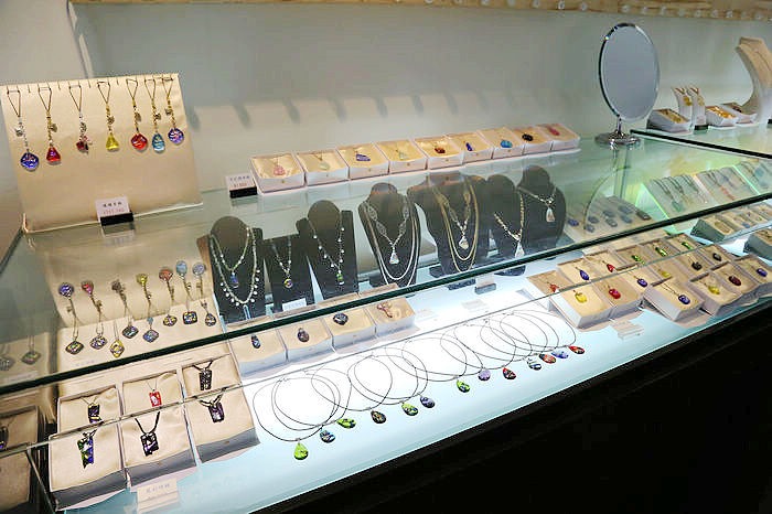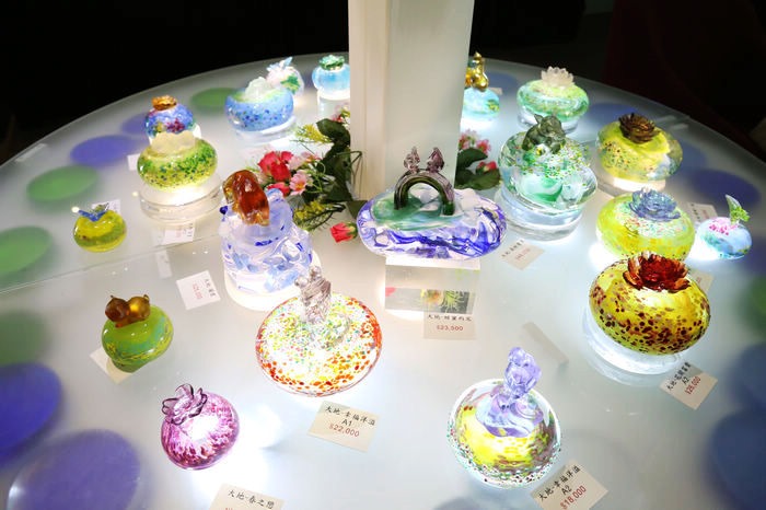 琉璃精品區,類別遍及觀賞收藏的及生活時尚的大小琉璃精品。