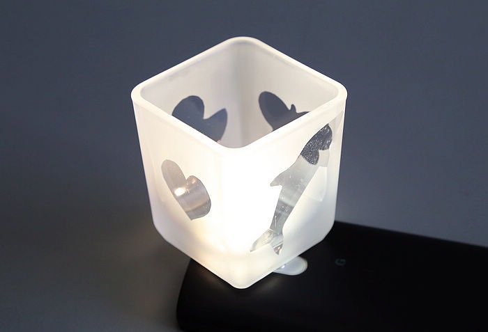 用手機打燈後,圖案都浮現出來了!是不是很美?用來點蠟燭營造浪漫氣氛!