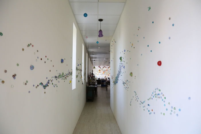 進入觀光工廠,可見以多色琉璃裝飾大小角落的用心,徹底讓工藝品落實生活,讓每顆大小琉璃放在哪個位置都能發光。