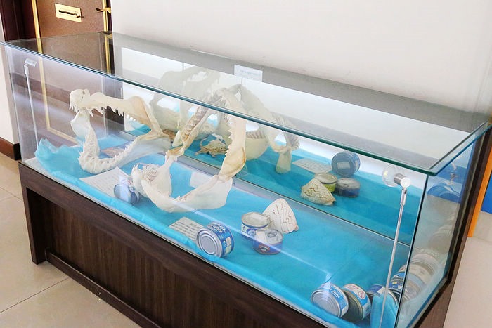 斬仔牙齒展示、鮪魚罐頭的標示展示,原來在台灣超市所賣的鮪魚罐頭大多來自越南及泰國,而台灣撈補到的鮪魚大多銷往國際市場。
