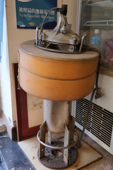 冰箱旁擺放的無線電浮標是用來連接到網線或魚網,如此一來魚較容易被無線電追蹤器尋獲,這個浮標被壓扁變型,可見當時受到的破壞力大,要不就是被很大型的魚類拉到。