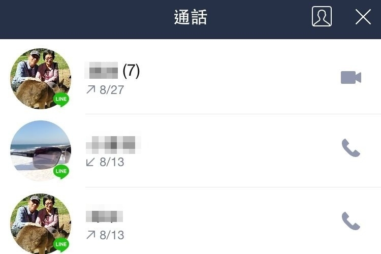 首先我們可以在設定中看到左方有著 “Call” 的選項,點進去會為我們將使用 LINE 通訊過的對話記錄顯示在其中,右側則是視訊或是通話的圖示。