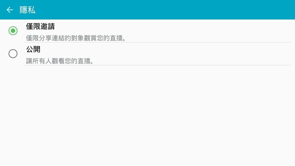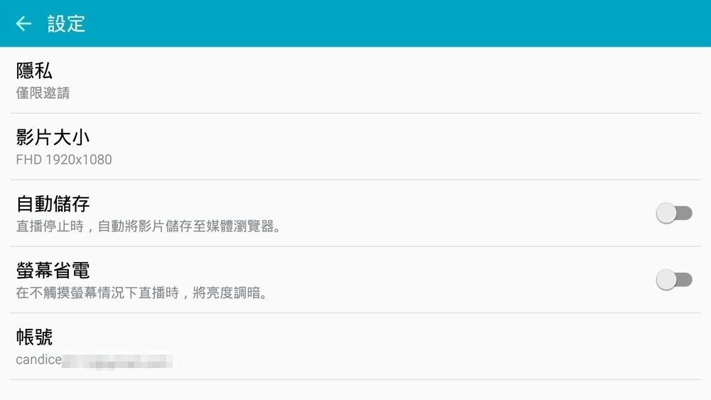 2) 設定中可以看到隱私同樣有著 “僅限邀請” 與 “公開” 兩種,而影片大小則分別有 FHD (1920 x 1080)、HD (1280 x 720)、WVGA (854 x 480)、WQVGA(426 x 240) 四種。