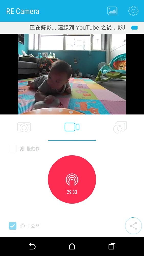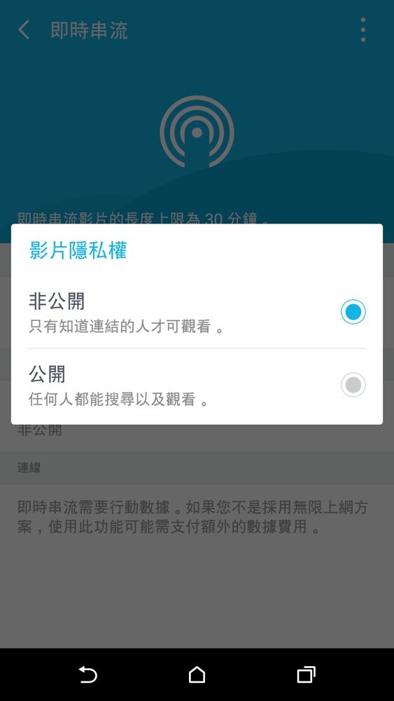 1) 當進入相機後模式選擇為 “直播視訊”時,可以發現同樣是透過我們 Google 的帳號與 YouTube 媒介來進行直播。