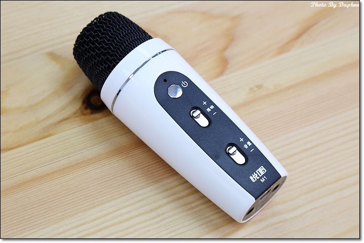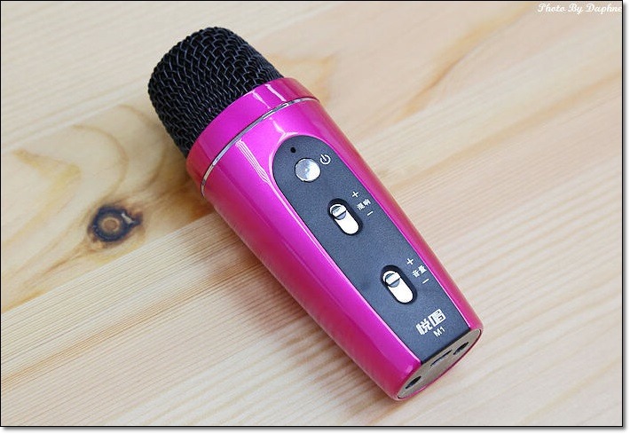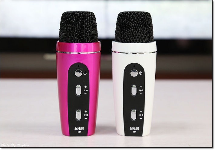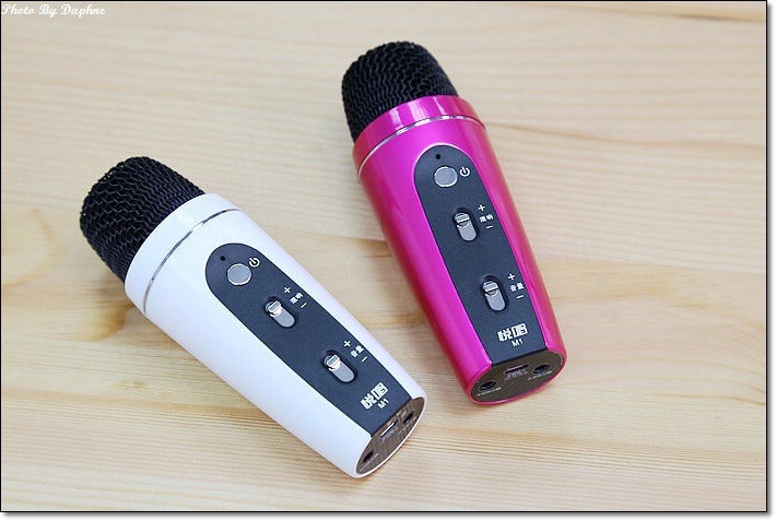 左邊的是 idol K8 偶像K吧麥克風,以航空鋁美合金機身設計,右邊兩支是近期推出的悅唱M1 ,為塑料機身,光是外形就有明顯差異,一瘦長一矮胖 XD,電源按鍵的擺放位置也不同。