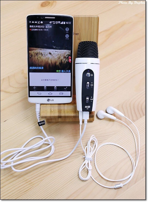 個人化的歡唱模式-耳機連接 K 歌,Daphne 的手機使用的是 LG G3,所以是使用國際標準版錄音線,連接音頻輸入,並將耳機連接音頻輸出,如果你對音質與臨場感的要求標準更高,可以將耳機更換成更高檔的全罩式耳機,迴音效果與自己的聲音都能聽得一清二楚,有如在 KTV 歡唱的感覺,一使用就回不去了,只是旁邊有人的話,他就只能看你自嗨了XD。