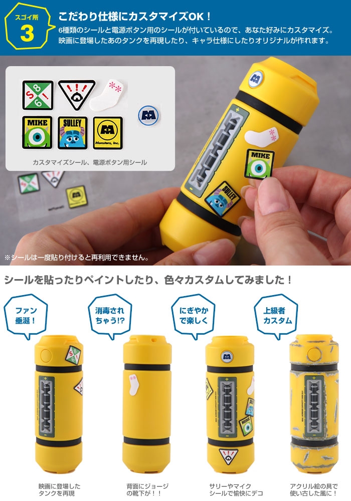 當然,對迪士尼的設計師而言如果只有外型像電力儲存瓶,那哪夠 “怪獸電力公司” ?! 因此整個包裝中不只有儲存瓶行動電源本體,還有好幾張怪獸電力公司迷們看到會會心一笑的招牌設計,包括著主角毛怪 (Suley)、大眼 (Mike),還有連那可以讓全怪獸電力公司進入警備的襪子也跑出來參一 “腳” !
