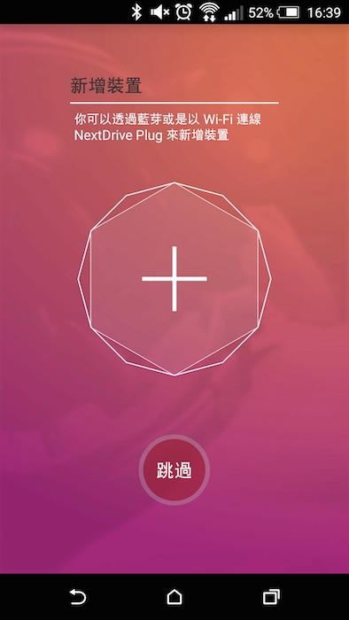 開啟 NextDrive Connect 後,會立刻跳出新增裝置頁面,按下中間的 + 後就可以馬上新增 NextDrive Plug 無線擴充座