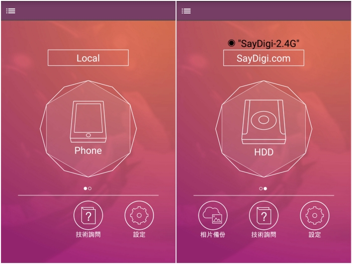 當 NextDrive Plug 無線擴充座連線完成後,會看到兩個儲存空間,Phone 代表的是手機儲存空間,而 HDD 代表著就是與 NextDrive Plug 無線擴充座連接在一起的外部儲存空間。