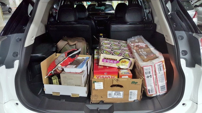 回程後突然想到家中的冰箱與食物都快見底,趁開著有大行李箱的 X-TRAIL,順道前往大賣場補貨,除了一般乾糧外,當然還要冷凍食品,一次就買了兩大箱,但這兩大箱對於超大行李空間的 X-TRAIL 真的只是小 Case,加上行李與背包,還有相當大的空間可擺放。
