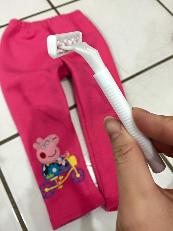 到底要如何快速去除惱人的毛球呢?非常簡單!只要利用退役的刮鬍刀,直接輕輕的在有毛球的衣料表面上刮,就能輕鬆去除毛球。接著來實驗看看吧!我們可以看到首圖上右邊的褲管充滿著毛球,因為棉質的衣料洗久都不可避免的會發生這些問題,但是只要跟爸爸撒嬌一聲,請他把不要的刮鬍刀給你,清洗過後,就能來刮除這些頑固的毛球了!
