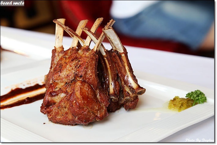 在烹調上,使用醃料醃過後,先煎後烤,以鎖住內部的肉汁。這裡的犢牛小排並不會預設幾分熟,想吃有嫩度不要太脆的可以先告知店家。附有辣醬(覺得像紐奧良風味)酸黃瓜供沾著吃。