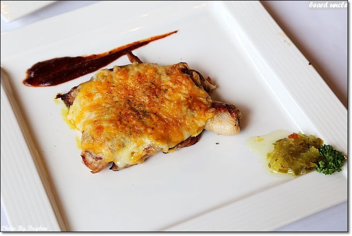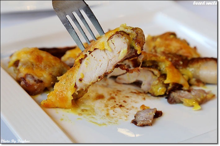 雞肉醃過,抹上蜂蜜芥末醬,蜂蜜芥末醬吃到的感覺是,似乎還有加其他的東西調過,有帶點橙汁的酸甜果香,還有起司,腿排吃來不單薄,烹調過程中的殘餘油沒有跟著盤子一起上來,佐特調的蜂蜜芥末醬,食味清新,雞肉嫩。