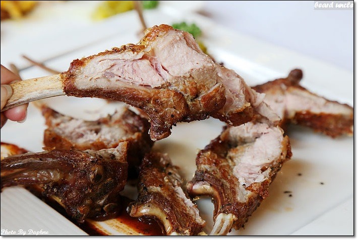 循著骨頭切開,看到帶點粉色的斷面,外皮脆,內部的肉不油也不乾,可能因為是犢牛,沒有牛肉的腥氣,肉質細嫩,還帶點淡淡奶香,向來不愛吃帶骨肉,覺得要啃很麻煩,犢牛還蠻好啃的。