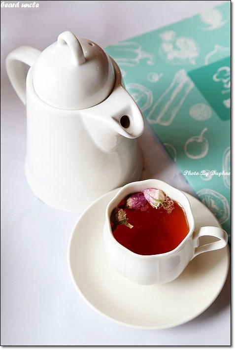 以綠茶為底,縈繞一抹清香,茶水不澀,杯緣聚集著淡淡的玫瑰花香,一聞就感到舒緩鎮靜。