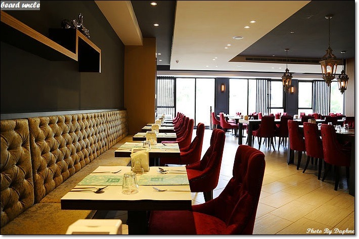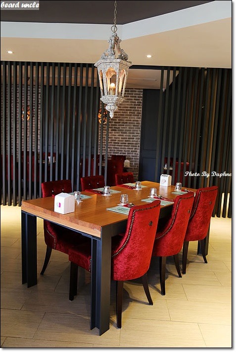 Daphne 還蠻喜歡餐廳設在二樓以上的樓層空間,能稍隔離街頭的吵雜,而店家在硬體上的投資對照餐點售價真的不符比例原則啊!使用精緻華麗又舒適的絨布座椅,如同坐沙發般的舒服,在這樣的空間賣你餐點竟然才百來元!