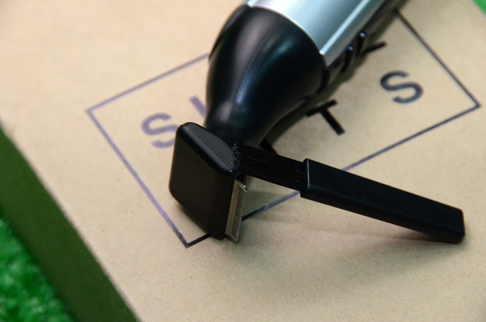 裡面還有附上清潔刷,可隨時清潔修容刀,不過因為全機可以水洗,所以使用完在水龍頭下沖水洗淨即可。