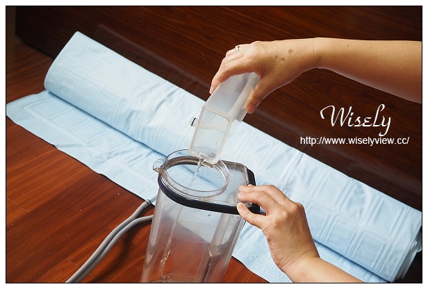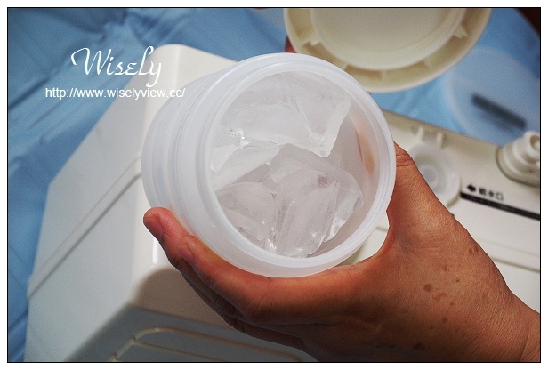 在結冰罐的部份,使用者可以在裝滿水之後將它放至冷凍庫結冰再做使用;小型的結冰罐大概可維持1.5~2小時的效能,而大型的結冰罐則可維持3.5~4小時左右。但若家裡的冰箱沒有那麼大或是己塞入食物無法結冰,那麼也可以直接倒入冰塊使用即可~Wisely家裡有快速製冰機,所以這種方式比較符合我的使用需求。