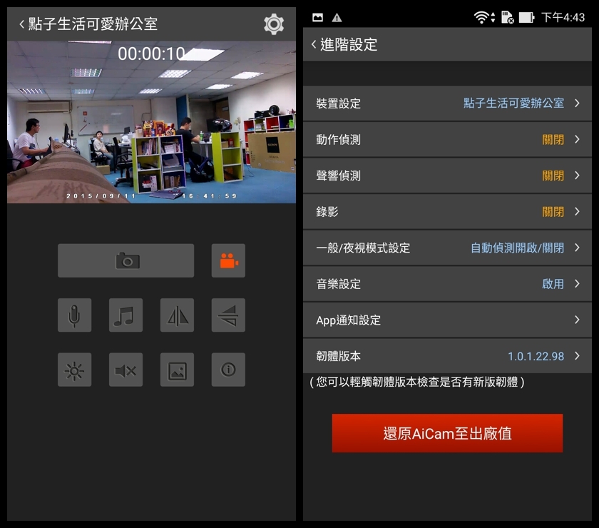 其實 AiCam 除了在家裡做安全監控外,在公司也還滿好用的,善加利用雙向語音功能,放在公司就算老闆在外面也可以經由 AiCam 跟同仁溝通互動!