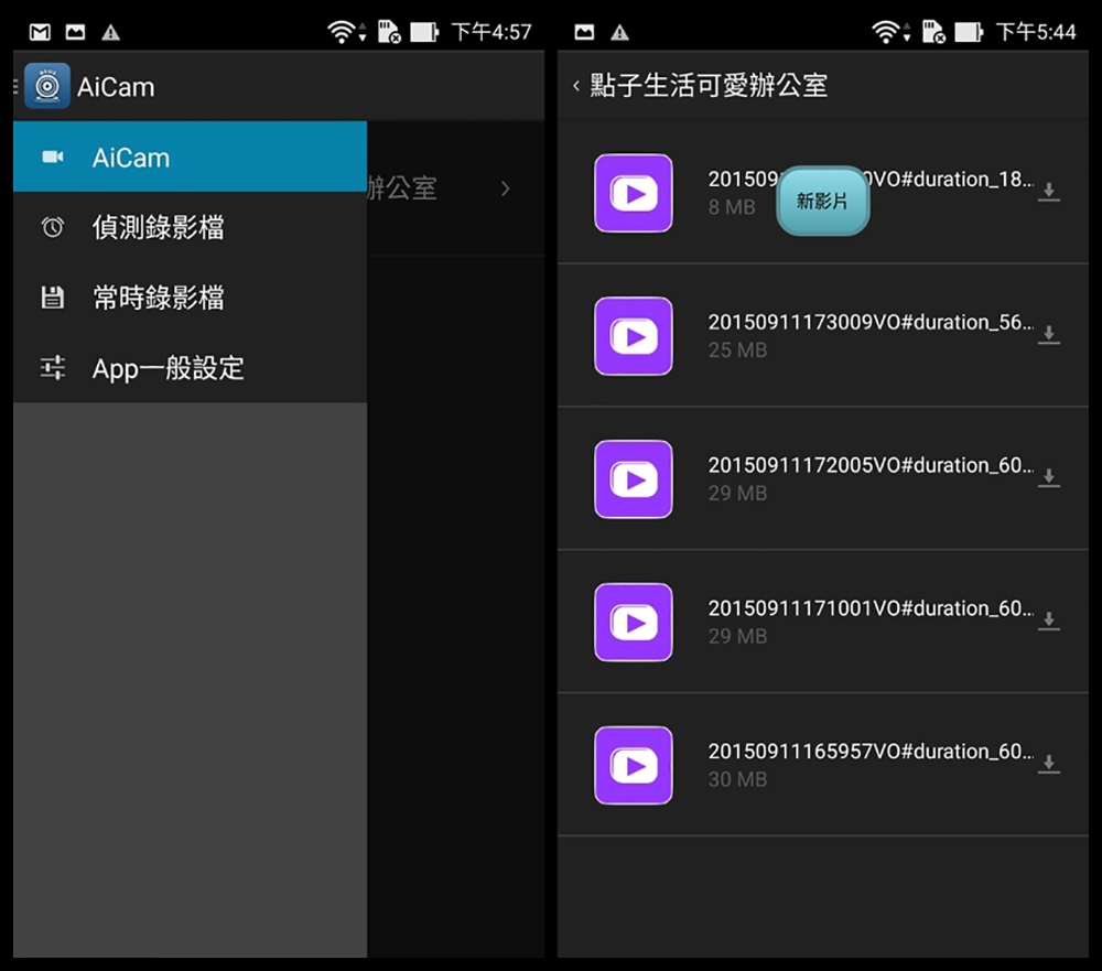 除了有即時影像外,存好的錄影檔案也可以從 AiCam APP 中觀看或管理。