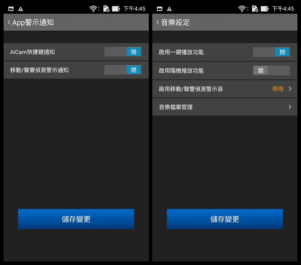 到了晚上也不用擔心畫面不清楚,AiCam 提供了紅外線夜間攝影功能,另外像是主動監控警示功能,AiCam 有動作感應和聲響感應兩種偵測功能,這在夜深人靜時也能「主動」依照環境因素的變化,啟動錄影或是 App 通知,是很實用的設計。