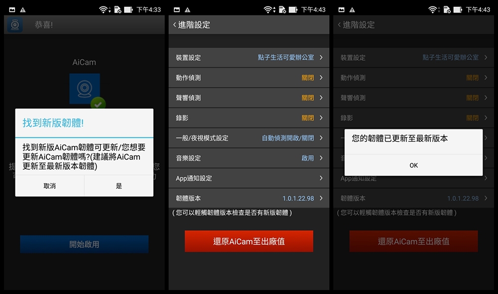 另外如果 AiCam 有更新韌體時,可以直接進行升級更新。