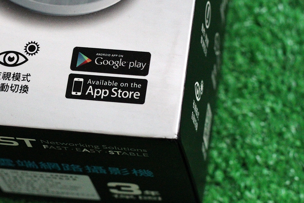 簡單說明一下產品重點規格,攝影方面有 720p 的百萬畫素解析度,提供 24fps 的 HD 畫質錄製,重要的是由於有 1/4″ CMOS 感光元件、f2.8 大光圈和紅外線 IR 補光燈設計,讓夜間攝影也有很好的表現。儲存空間方面除了內建 128MB 的 NAND Flash 之外,免費提供 5GB 的雲端空間以及 7 天循環錄影。另外配合相關功能有雙天線 802.11n 無線網路模組、內建喇叭和麥克風。