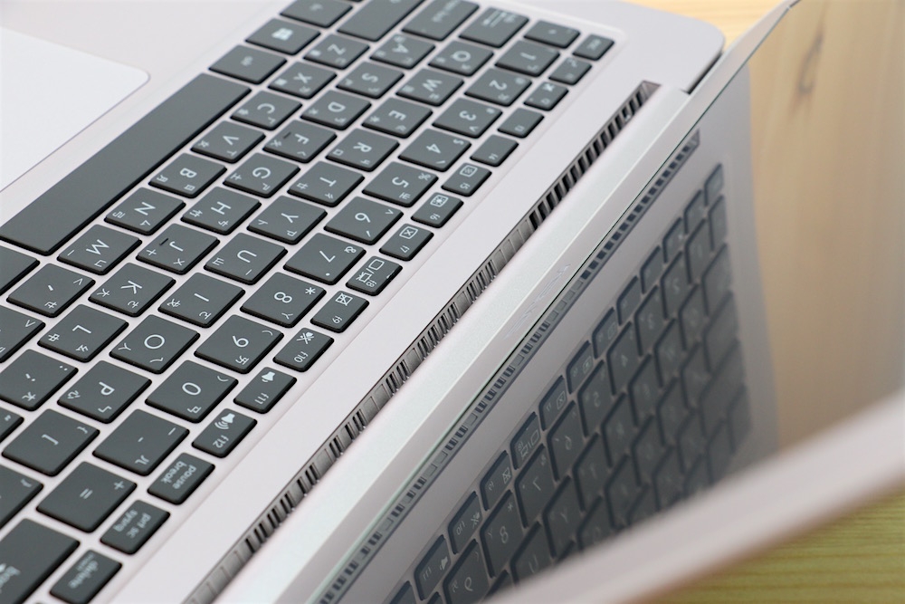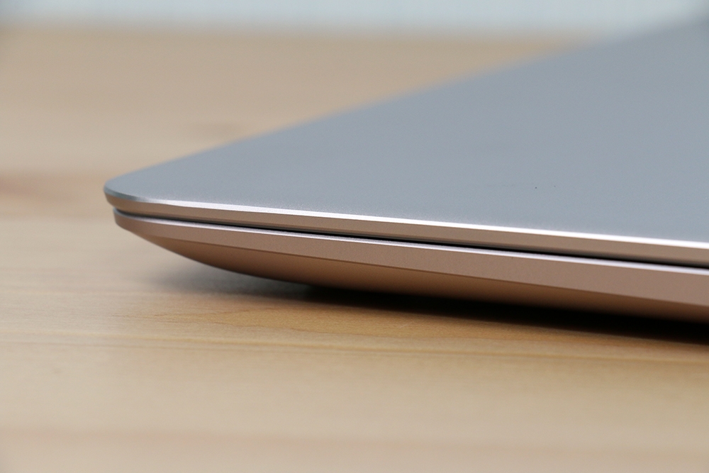螢幕和鍵盤外面連結處有設計這個小凸起輪廓造型,這其實是有其用意的,當我們使用電腦時,提供一個微微的斜度,讓手能夠符合更舒適的角度進而降低疲勞,是一個相當體貼的小設計。