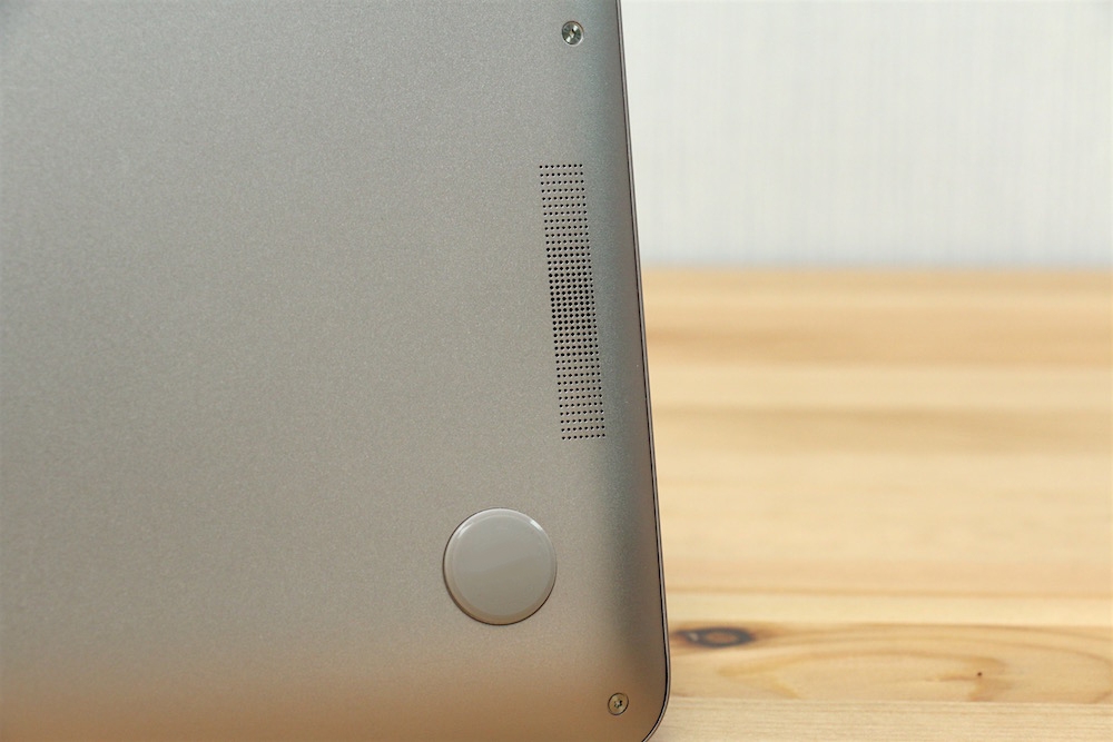 底部的設計也滿值得一提的,簡單來說在四個角都有做穩定的圓形防滑墊,中間靠近螢幕連接轉折處做了散熱的設計,另外左右兩側則是音效喇叭。