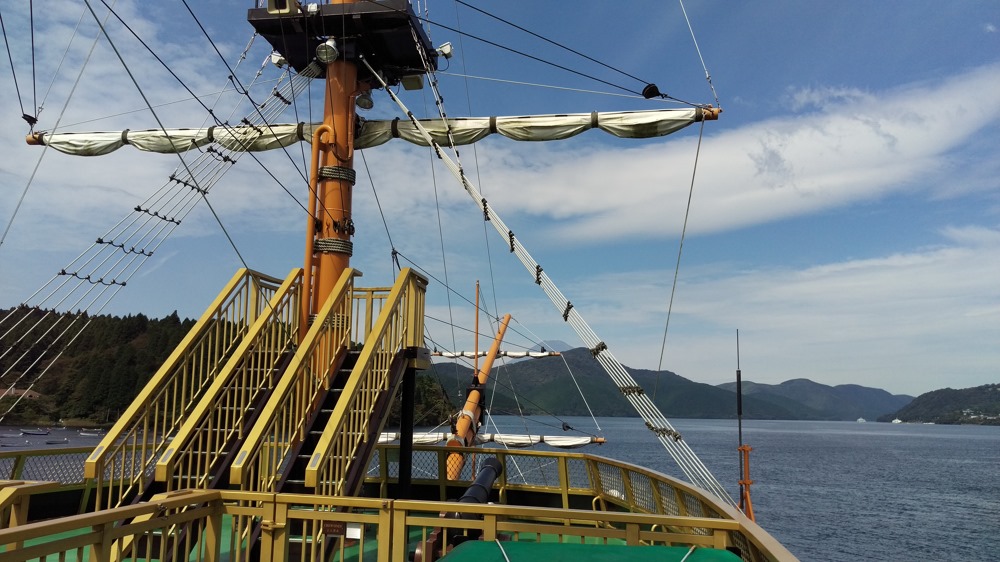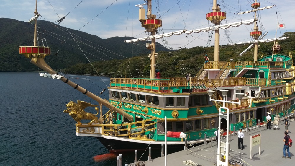 箱根海賊船是穿梭在蘆之湖三個碼頭的觀光渡輪,都是以海賊船的樣貌呈現,非常有趣。目前分別有皇家太陽II、瓦薩王號與勝利號三艘。這三艘穿梭在桃源台港、元箱根港與箱根町港,關於渡輪的相關航班資訊,大家可參考箱根導航網站查詢。