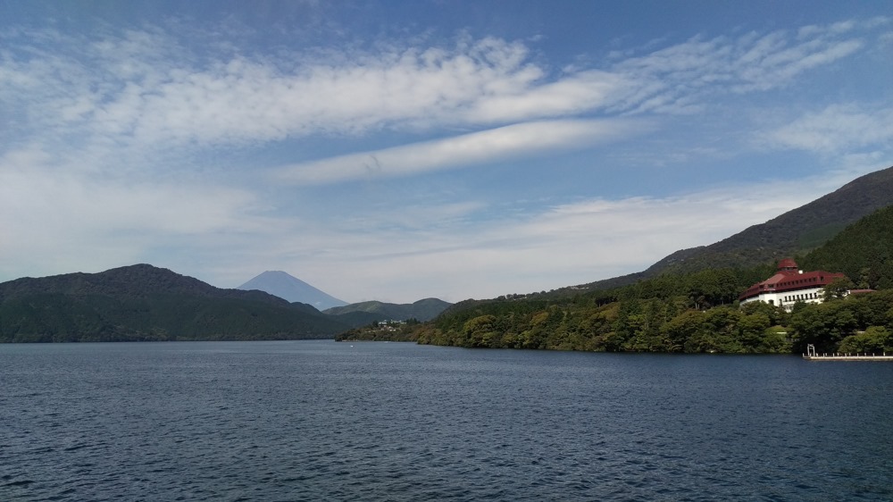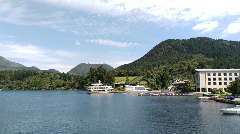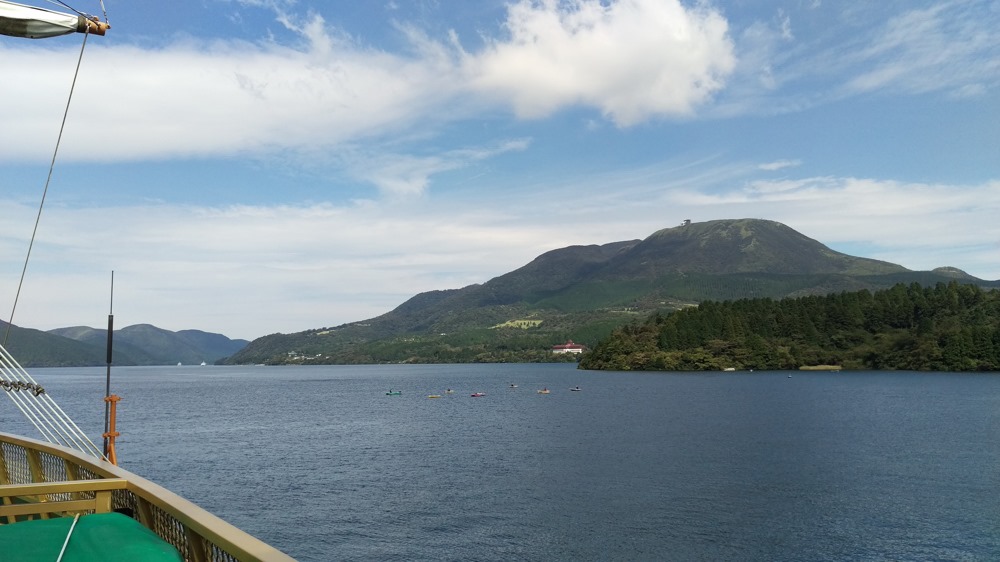 這次我們住宿的飯店是位於蘆之湖畔的王子飯店,飯店內無論在房間、早餐與服務,都相當貼心,在旅館一樓還有露天溫泉,也可直接走到湖畔欣賞蘆之湖與富士山美景。一早用完餐泡完溫泉後,隨即前往蘆之湖的渡船頭,搭乘海盜船遊湖,這據說是觀光客的經典行程,對於第二次來日本的我當然也要好好扮演觀光客角色。