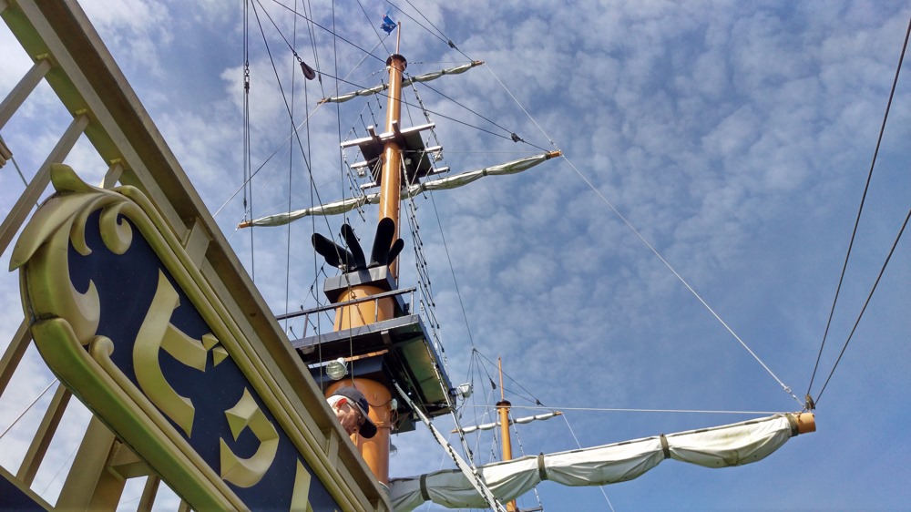 啟動觀光客自拍模式,所搭乘的是勝利號海賊船。Butterfly 3 自拍很強大,1300萬象素的自拍感光元件讓畫質更為清晰,當然也可以搭配柔膚模式。