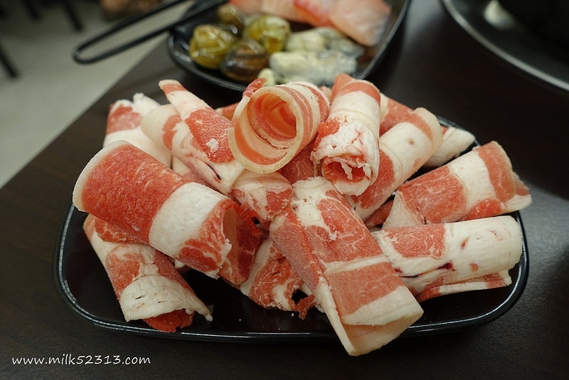 原本牛肉鍋附的牛肉是沒有油花,吃起來口感比較韌一點