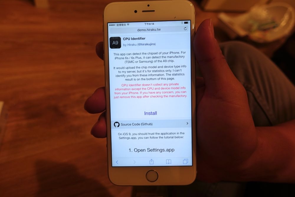 而要如何檢驗自己的 iPhone 6s /6s plus 是三星晶片還是台積電?首先請先 Google “CPU Identifier” (http://demo.hiraku.tw/CPUIdentifier/) 後選擇安裝 (Install)。