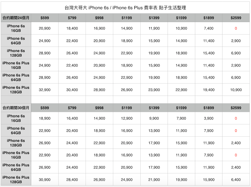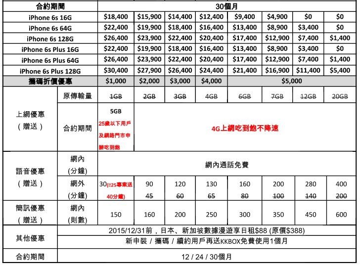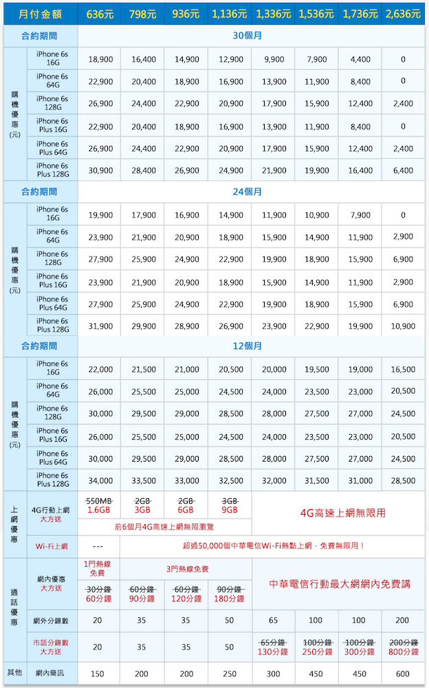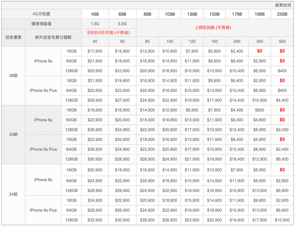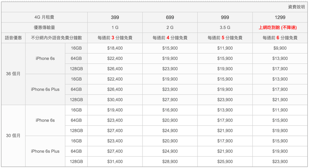 iPhone 6s / 6s Plus 各家電信費率懶人包