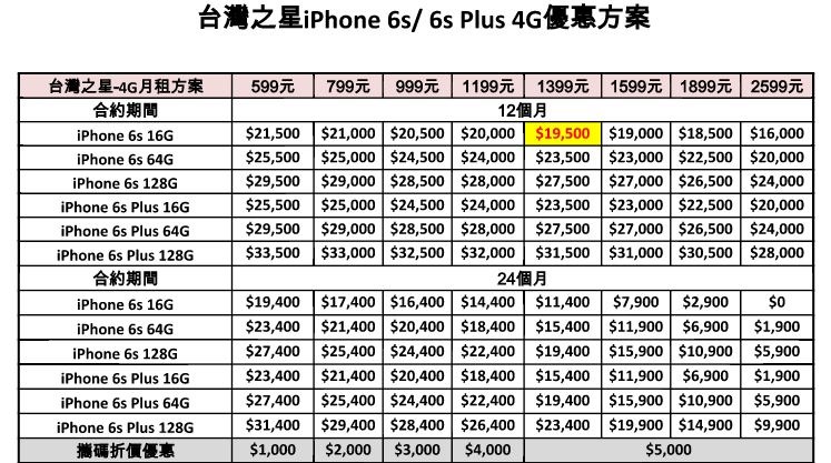 台灣之星 iPhone 6s / iPhone 6s Plus 費率方案