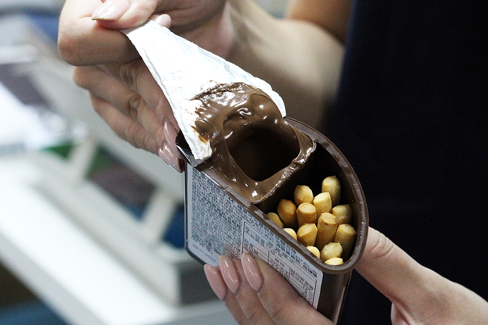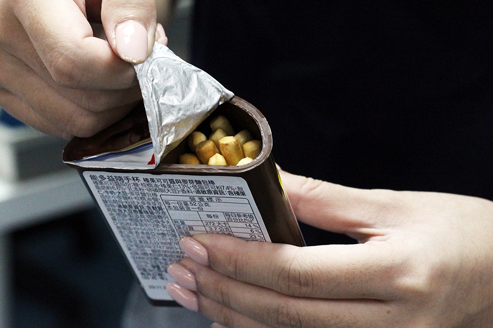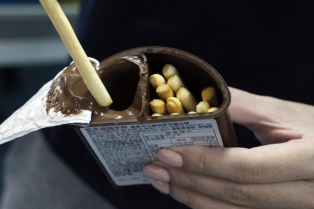 而且因為這樣的設計,讓我們吃麥芽麵包棒的時候都不會沾手,還能調整自己喜歡搭配榛果可可醬的量。